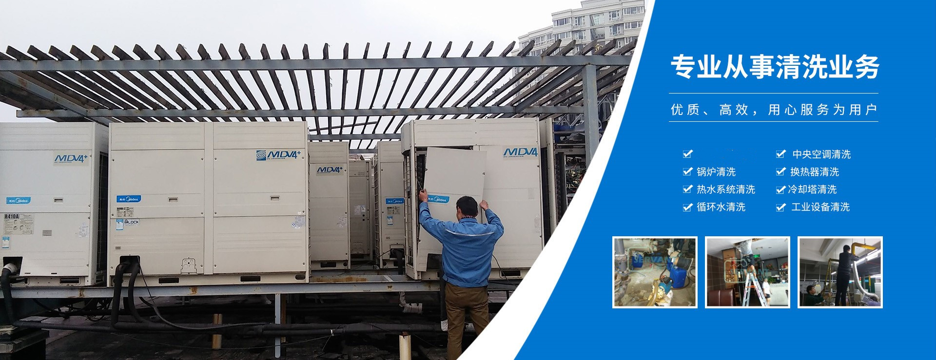 工業清洗工業制冷、供熱設備、各種儲罐、通水設備、鍋爐、循環水水處理與水質管理,冷卻塔、風管、工業排風煙囪清洗消毒,凍庫制冷設備、風